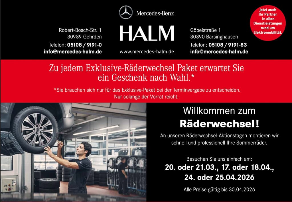 Für Sie immer eine gute und sichere Fahrt mit Ihrem guten Stern für die Region Hannover. Mercedes Halm in Gehrden und Barsinghausen.